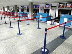 Check-in counter at Tbilisi's international airport after Moscow imposed the transport link in October 2006 (AFP)