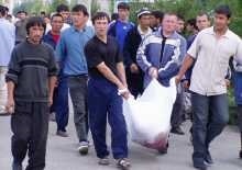 16 June 2005: Anvar Nabiev, Uzbekistan's deputy prosecutor-general, announces that 176 people were killed in unrest in Andijon on 13 May. Identifying 79 of those killed as "terrorists," Nabiev says that the "terrorists" seized 65 hostages, killing 14 of them. In subsequent clashes, the "terrorists" killed 20 policemen, 11 soldiers, and 45 ordinary residents. The identities of 21 people who were killed are still being established, Nabiev says. Baitemir Ibraev, a prosecutor in Kyrgyzstan's Jalal-Abad Oblast, says that 12 Uzbek asylum seekers who had been serving prison terms in Andijon on charges of religious extremism have been transferred from a camp to a detention facility in Osh.
