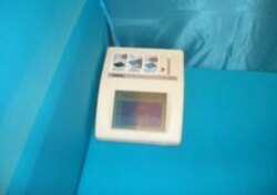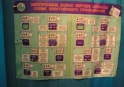 A Belarusian-made electronic voting machine at Almaty polling station No. 312