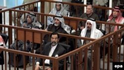 Prague, 5 December 2005 (RFE/RL) -- Saddam Hussein and seven of his senior deputies who are on trial on charges of crimes against humanity chanted loudly during today's hearing in Baghdad, and Hussein's defense team walked out of the courtroom in protest as the defendants repeated, "Long Live Iraq. Long live Iraq. Long Live the Arab nation."