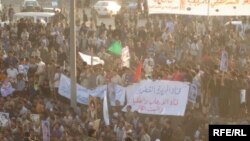In one southern town, police intervened when marchers turned their anger on a campaign office of former Prime Minister Iyad Allawi, who leads a secular coalition. There were protests in Al-Najaf, Karbala, Al-Basrah, and other cities.