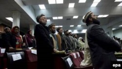 Members of Afghanistan's parliament are sworn in on 19 December (epa) 21 December 2005 (RFE/RL) -- Afghan opposition leader Yunus Qanuni was elected president of Afghanistan's lower house of parliament today, narrowly beating an ally to President Hamid Karzai.