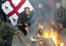 Tbilisi residents huddle around campfires during the gas crunch in January (epa)