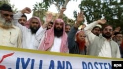 In Pakistan today, many religious schools, or madrasahs, called on the government to withdraw Pakistan's ambassador to Denmark over the cartoons.