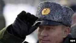 Russian President Putin in military uniform (file photo) (epa) 7 February 2006 -- President Vladimir Putin today praised the Federal Security Service (FSB) for the "professionalism" that he said Russia's counterintelligence service recently demonstrated in exposing foreign spies.