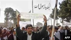 Officials in the city of Qalat in Zabul Province said seven police officers were injured by thrown stones, and three protesters were wounded.