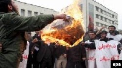 Islamabad residents protesting against the Prophet Muhammad cartoons on February 15 (epa)
