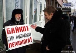 A protester in Vitsebsk calls for a boycott of the 19 March vote (RFE/RL)