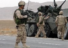 Members of the International Security & Assitance Force (ISAF) secure the site of a suicide blast in Kandahar (epa)