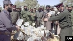 Afghan officials prepare to burn a drugs haul in Helmand Province (file photo) (AFP) March 11, 2006 -- Authorities say two police officers were kidnapped from their homes in southern Afghanistan and later beheaded and their bodies dumped in the desert.