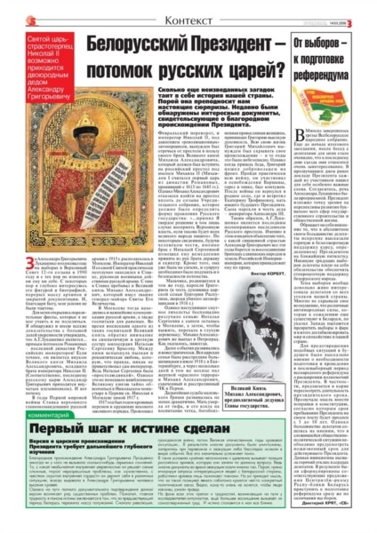 As an example, he cited one article that suggested that monarchy was the most suitable form of government for Belarus -- and that Lukashenka, by extension, should be recognized as tsar.
