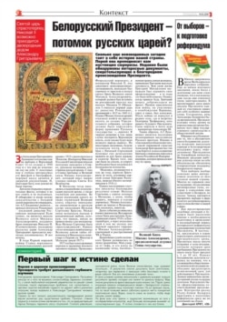 The mock "Sovetskaya Belorussiya" came out as the main opposition newspaper, "Narodnaya volya," saw its publishing contract summarily canceled by a Russian printing house in Smolensk. Two other Belarusian papers -- "BDG; Delovaya gazeta" and "Tovarishch" had their contracts suspended as well.