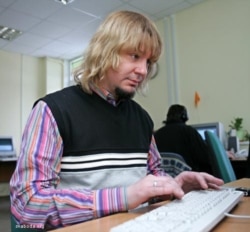 Lavon Volski of NRM speaking to listeners of RFE/RL's Belarusian Service on February 15, 2006 (RFE/RL)