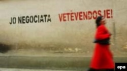 Graffiti on a wall in Prishtina, the capital of Kosovo, advocates for independence from Serbia (file photo) (epa) March 21, 2006 -- Austrian Foreign Minister Ursula Plassnik met with Kosovo Prime Minister Agim Ceku today and told him he has a special responsibility to reach out to the province's Serb community.