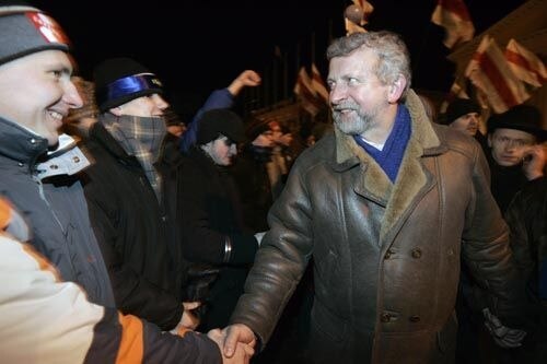 "Those cowards are afraid to come here [on the square] to arrest us, although they have no right to arrest us,” Milinkevich said. “Therefore, they’re trying to lure people [out of the square] and twist their arms around the corner. Then they bring charges against them."