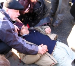 Addressing foreign reporters earlier today near the Akrestsyna detention center, Milinkevich had called upon authorities to refrain from violence, vowing in turn to hold a peaceful demonstration: