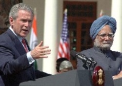 President George W. Bush (left) and Indian Prime Minister Manmohan Singh in New Delhi, March 2 (epa)