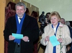 Opposition candidate Milinkevich and his wife vote in Minsk on March 19 (epa)