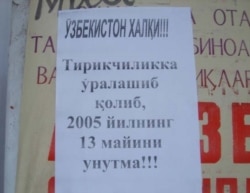 This flyer reads: "People of Uzbekistan! Amid [your] daily routine, don't forget May 13, 2005! (RFE/RL)