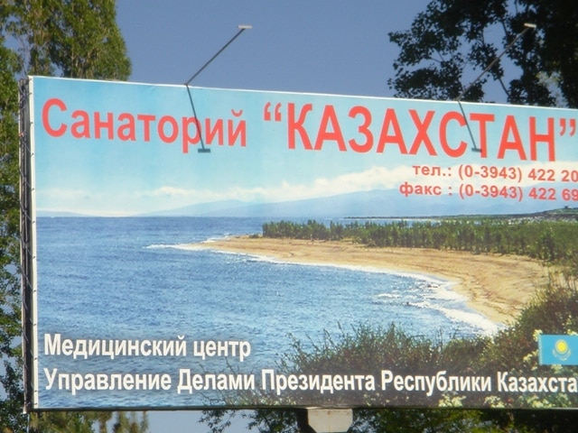 The effects of small-scale Kazakh investment in Issyk-Kul are already evident. Once-modest cabins -- with no running water and communal bathrooms -- have been joined by hotels named after Kazakhstan's former capital. A huge billboard advertises a health spa that claims ties to Kazakh President Nursultan Nazarbaev. Nazarbaev has a vacation home nearby, purportedly a gift from former President Akaev.
