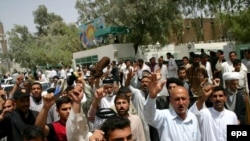 Iraqis in Al-Najaf today celebrating the death of al-Zarqawi (epa) WASHINGTON, June 9, 2006 (RFE/RL) -- Details of the air strike that killed Abu Mus'ab al-Zarqawi, the leader of Al-Qaeda in Iraq, are still emerging a day after his death was announced in Baghdad.