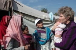 Karen Hughes on November 14, 2005, speaks to Pakistani women who were left homeless by an earthquake in that country in October 2005 (official site)