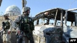 U.S. troops survey the aftermath of a car bomb in Baghdad (file photo) (AFP) June 15, 2006 -- The U.S. Senate has rejected a call for the withdrawal of U.S. combat forces from Iraq.