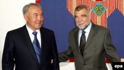 Croatian President Stipe Mesic (right) welcomes Kazakh President Nursultan Nazarbaev in Zagreb (epa) July 11, 2006 -- Croatia today signed a transportation agreement with Kazakhstan and also indicated it will support Kazakhstan's bid to join the World Trade Organization (WTO).
