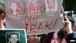 A scene from a rally in Romania in spring 2005 in support of the abducted journalists (epa) July 21, 2006 -- Romania's top prosecutor, Ilie Botos, resigned today after criticism of his handling of a case that ended with the flight of a Syrian-Romanian businessman accused of masterminding the abduction of three journalists in Iraq.