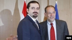 Solana (right) with Saad Hariri in Brussels today (epa) BRUSSELS, July 24, 2006 (RFE/RL) -- Javier Solana, the EU high representative for common foreign and security  policy, said today that the European Union is working together with the United Nations on the "concept" of a peacekeeping force for Lebanon.