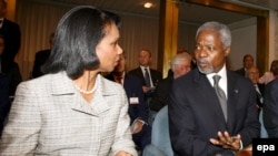 Besides Rice, the foreign ministers of 14 European and Arab nations took part in the talks, along with Annan and envoys from the World Bank and European Union. An envoy from the Vatican sat in on the discussions as an observer.