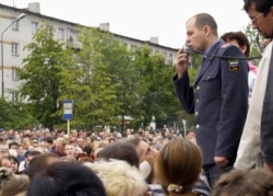 A law-enforcement officer addresses a crowd in the first days of rioting (ITAR-TASS)