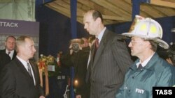Putin (center) visiting Chechnya in 2004 with pro-Kremlin Chechen President Alu Alkhanov (left) and Chechen First Deputy Prime Minister Ramzan Kadyrov (TASS)