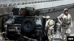U.S. Undersecretary of State Karen Hughes being interviewed by RFE/RL in Prague on June 11 (RFE/RL)