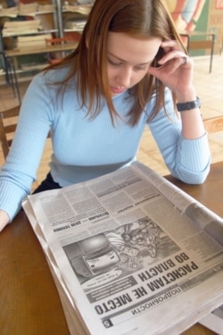 A Volgograd resident reads the controversial issue of "Gorodskiye vesti" (TASS)
