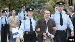 The crisis was triggered by Georgia's expulsion of four alleged Russian spies, pictured here being handed over to the Russian authorities (epa) BRUSSELS, October 13, 2006 (RFE/RL) -- The European Union is set to voice "grave concern" over Russia's economic blockade on Georgia and its recent mass expulsions of Georgians.