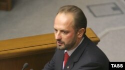 Roman Bezsmertnyy, leader of the Our Ukraine bloc's parliamentary faction, addresses the Verkhovna Rada on October 17 (ITAR-TASS) KYIV, October 19, 2006, (RFE/RL) -- Five ministers from the Our Ukraine faction today resigned from their posts in the Ukrainian cabinet.