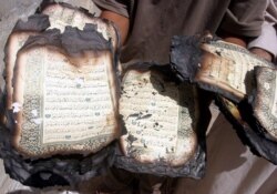 A Koran that was burnt during fighting between coalition forces and Shi'ite militiamen in Baghdad in July (epa)