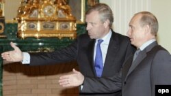 Putin (right) welcomes de Hoop Scheffer in Moscow on October 26 (epa) October 26, 2006 -- NATO Secretary-General Jaap de Hoop Scheffer called on Russia today to lift punitive measures it imposed on Georgia in a recent spying row.