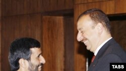 Aliyev (right) with Iranian President Mahmud Ahmadinejad in Baku in May (ITAR-TASS) October 27, 2006 -- Azerbaijani President Ilham Aliyev said today that potential sanctions on neighboring Iran because of Tehran's disputed nuclear program could have a negative impact on the region.