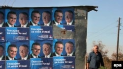 An ethnic Serb in Gracanica, Kosovo, passing posters urging Serbs to vote in the October 28-29 referendum (epa)