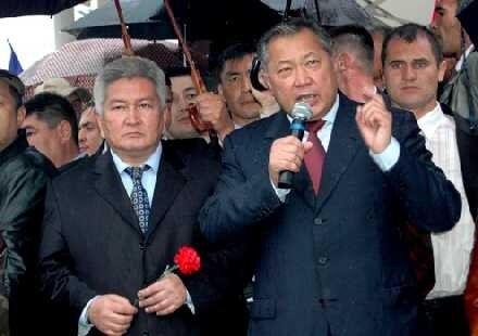 President Bakiev (right) and Prime Minister Kulov addressed a protest rally in April 2006