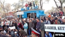 Addressing protesters gathered in front of the building that hosts the presidential administration and the government's headquarters -- known as the White House -- opposition lawmaker Omurbek Babanov accused the president of foul play.