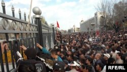 Their numbers swelled to well over 10,000 after Bakiev today submitted his own counterproposals to amend the existing constitution.
