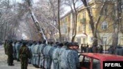 Police form a line at an opposition rally in Almaty in March 2005 (RFE/RL) ASTANA, November 24, 2006 (RFE/RL) -- Kazakhstan's parliament has lifted a ban on postelection demonstrations, RFE/RL's Kazakh Service reported.