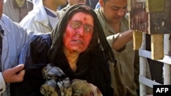 An Iraqi mother, her face covered by the blood of her two police-officer sons, holds their shoes during their funeral procession in Al-Ba'qubah (file photo) (AFP) November 25, 2006 -- The leaders of Turkey and Jordan today warned that partitioning Iraq would drive sectarian violence there to new levels and plunge the entire region into chaos.