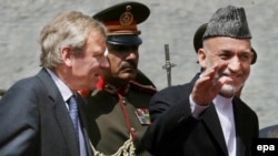 De Hoop Scheffer (left) with Afghan President Hamid Karzai in Kabul in August (epa) November 28, 2006 -- NATO Secretary-General Jaap de Hoop Scheffer today urged member countries not to lose heart in its operations in Afghanistan despite a strengthening insurgency.