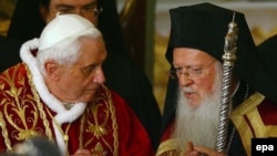 Benedict (left) with Patriarch Bartholomew in Istanbul on November 29 (epa) ISTANBUL, November 30, 2006 (RFE/RL) -- Are Christianity’s biggest churches heading toward a holy alliance?