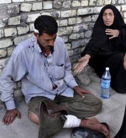 An injured man rests outside of a hospital after being hurt in an explosion in Baghdad, October 25 (epa)