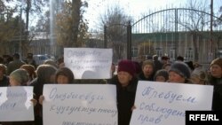 Protesters in Osh on December 11 calling for Orozbaev to be released (RFE/RL) December 12, 2006 -- Reports from southern Kyrgyzstan say police have released former lawmaker Mamat Orozbaev on health grounds.
